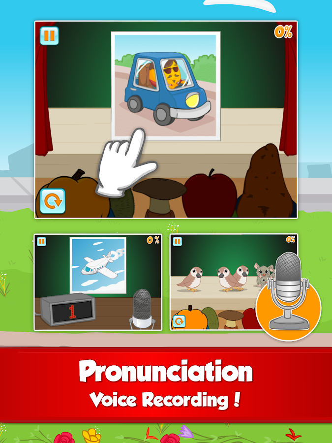 Offering beginner and intermediate level, the games include hangman, four in a row, mix and match, pong, and more, centered around themes like colors, weather, school, etc.